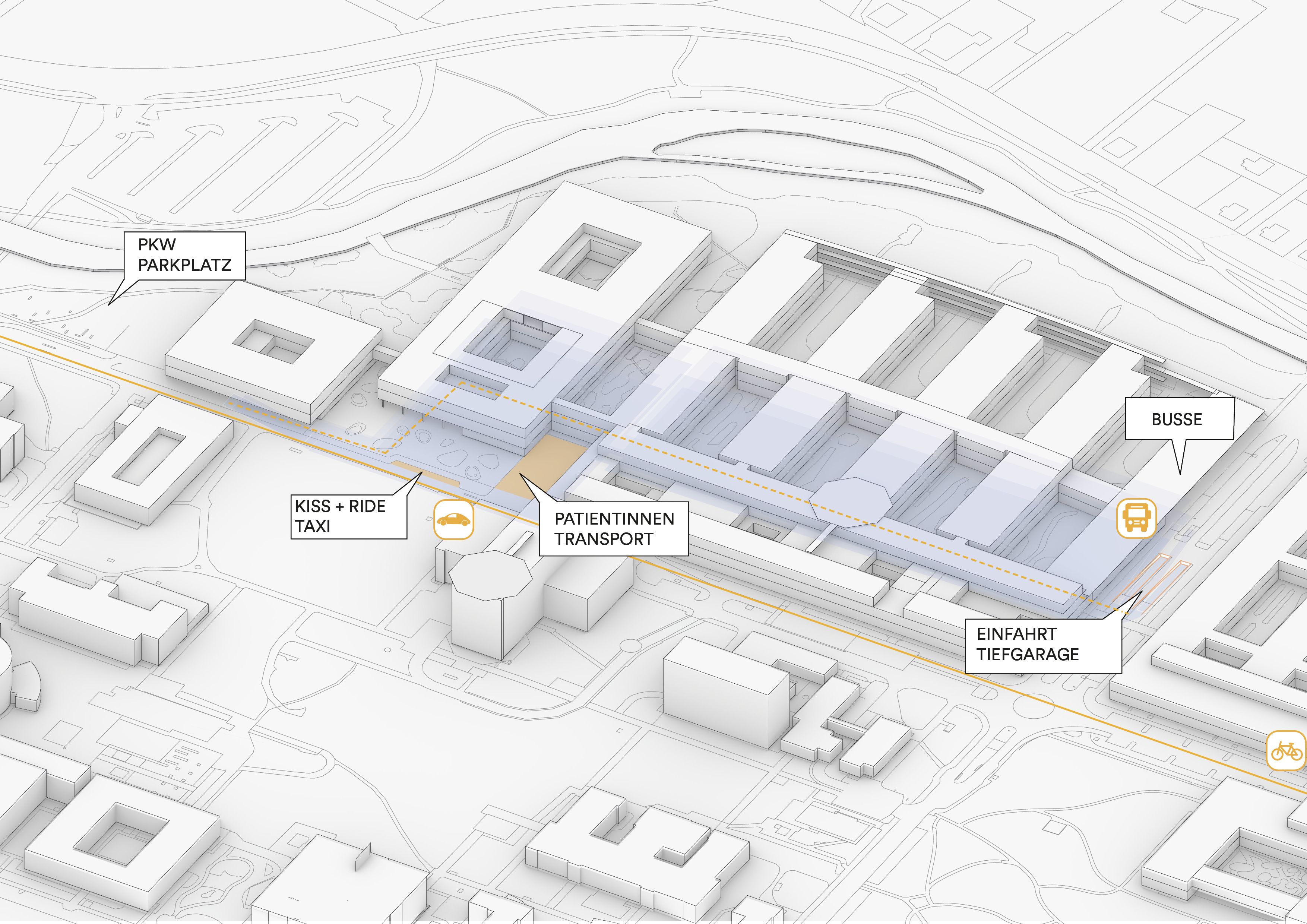 Evidenzbasierte Faktoren der Healing Architecture – zur Förderung des Wohlbefindens aller Menschen vor Ort – sind in allen Planungsprämissen berücksichtigt. Besonderes Augenmerkt liegt auf der Stressreduktion durch den Einsatz von besonders viel Tageslicht, vielfältigen Ausblicken und leichten Zugängen in die Natur.